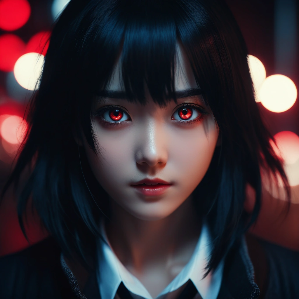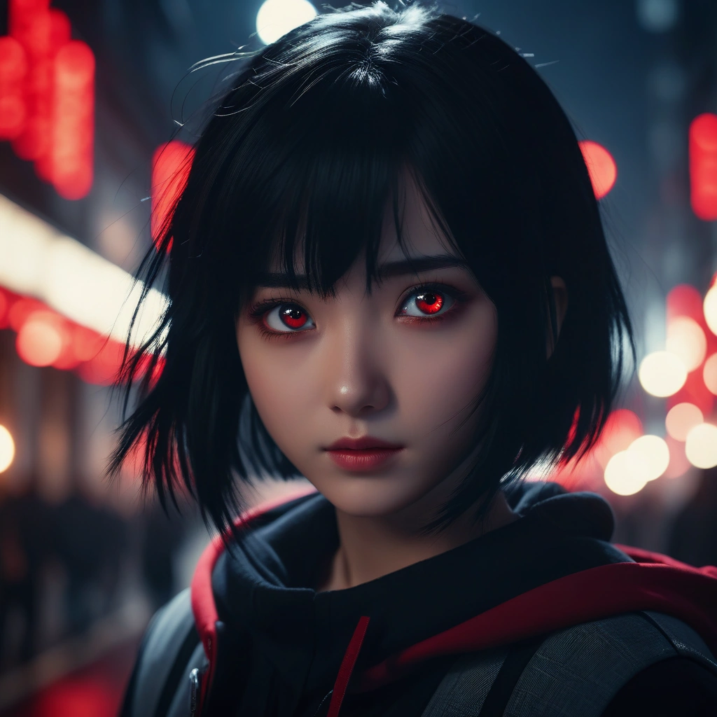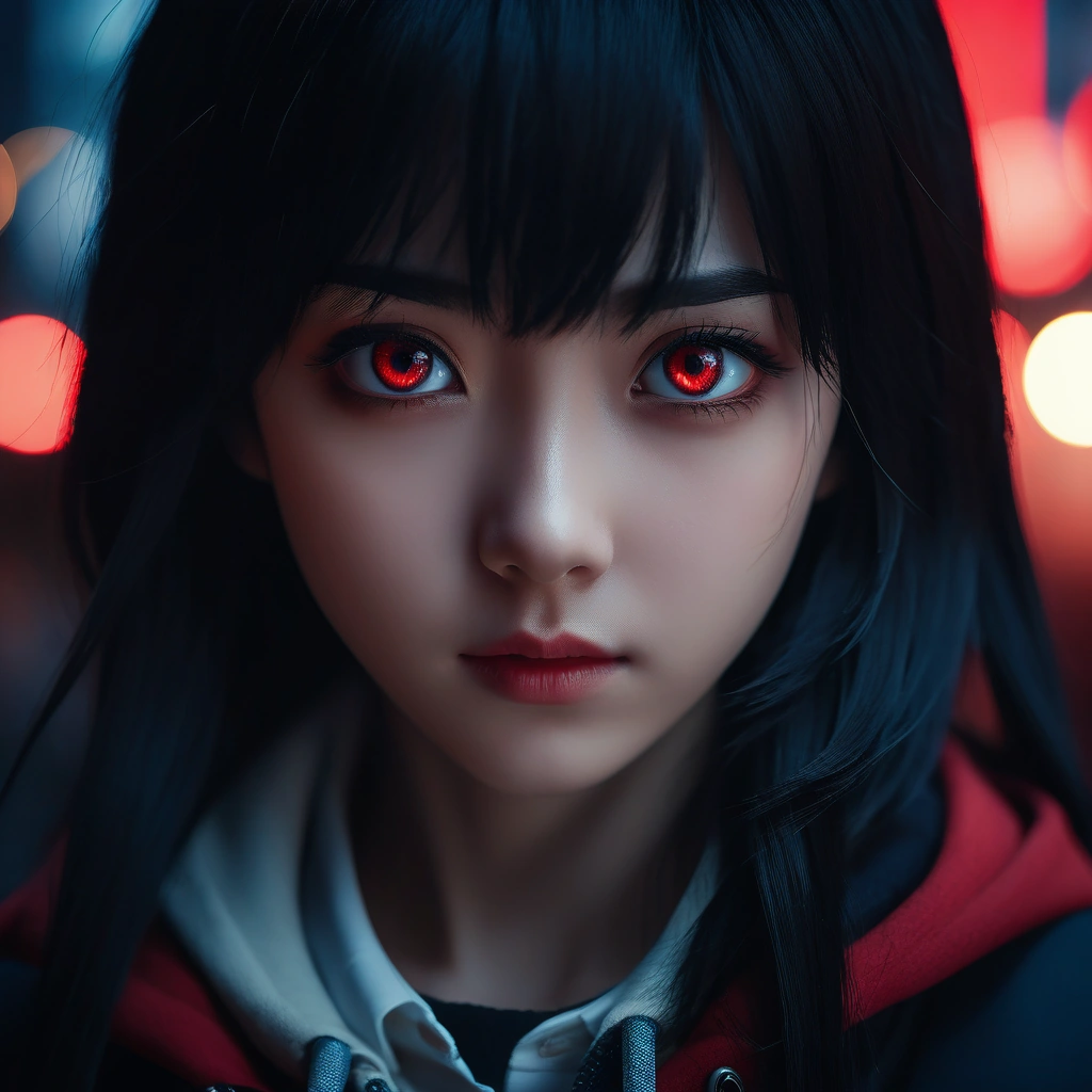 anime girl black hair red eyes