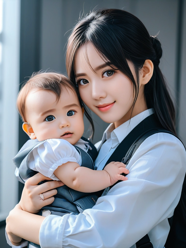 Anime girl holding a baby...