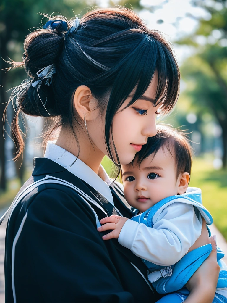 anime girl holding a baby boy
