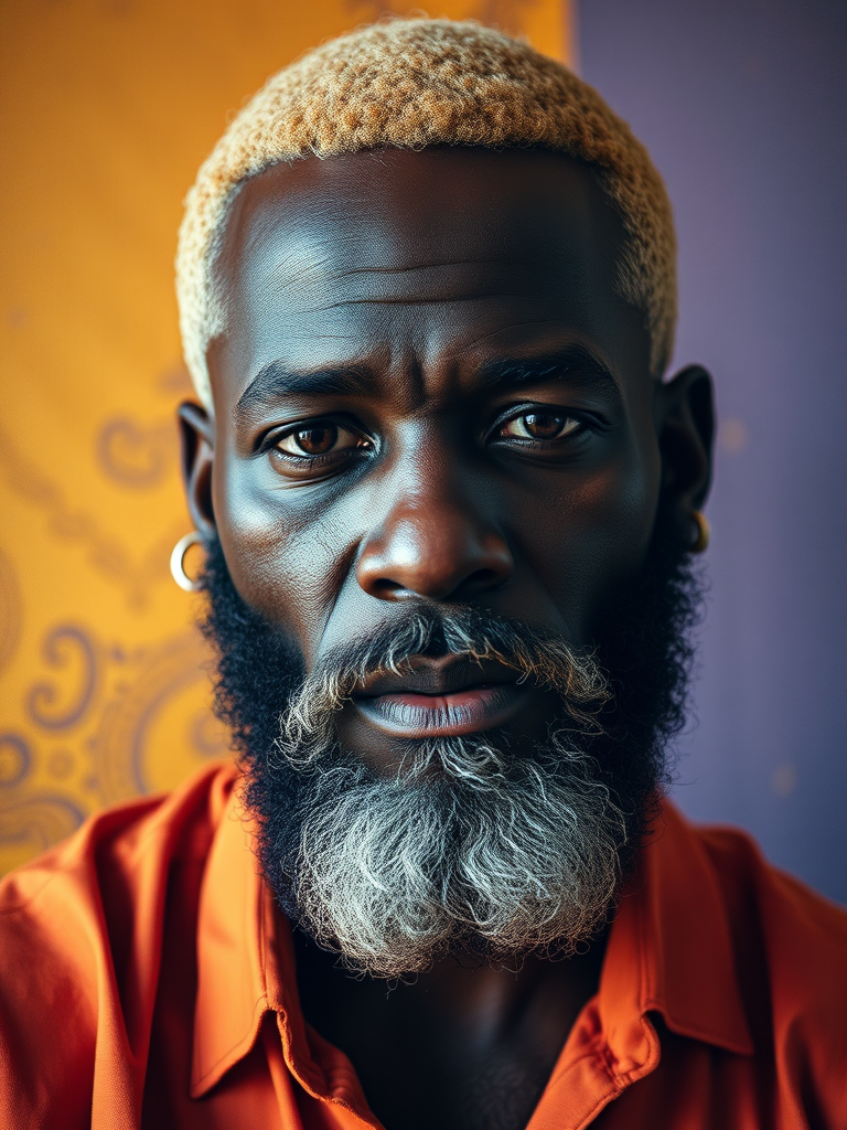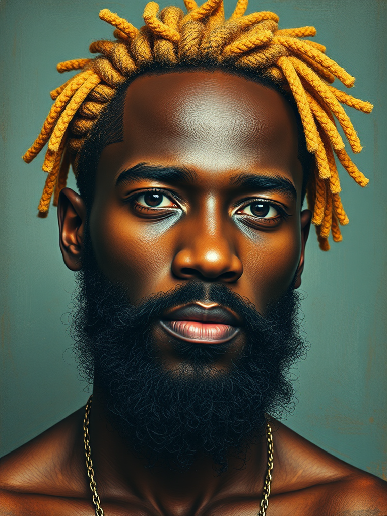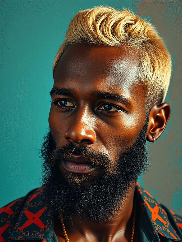 Blonde african man with beard portrait, Fauvism