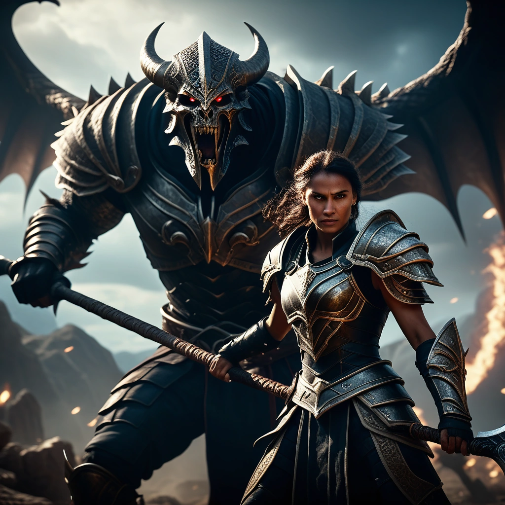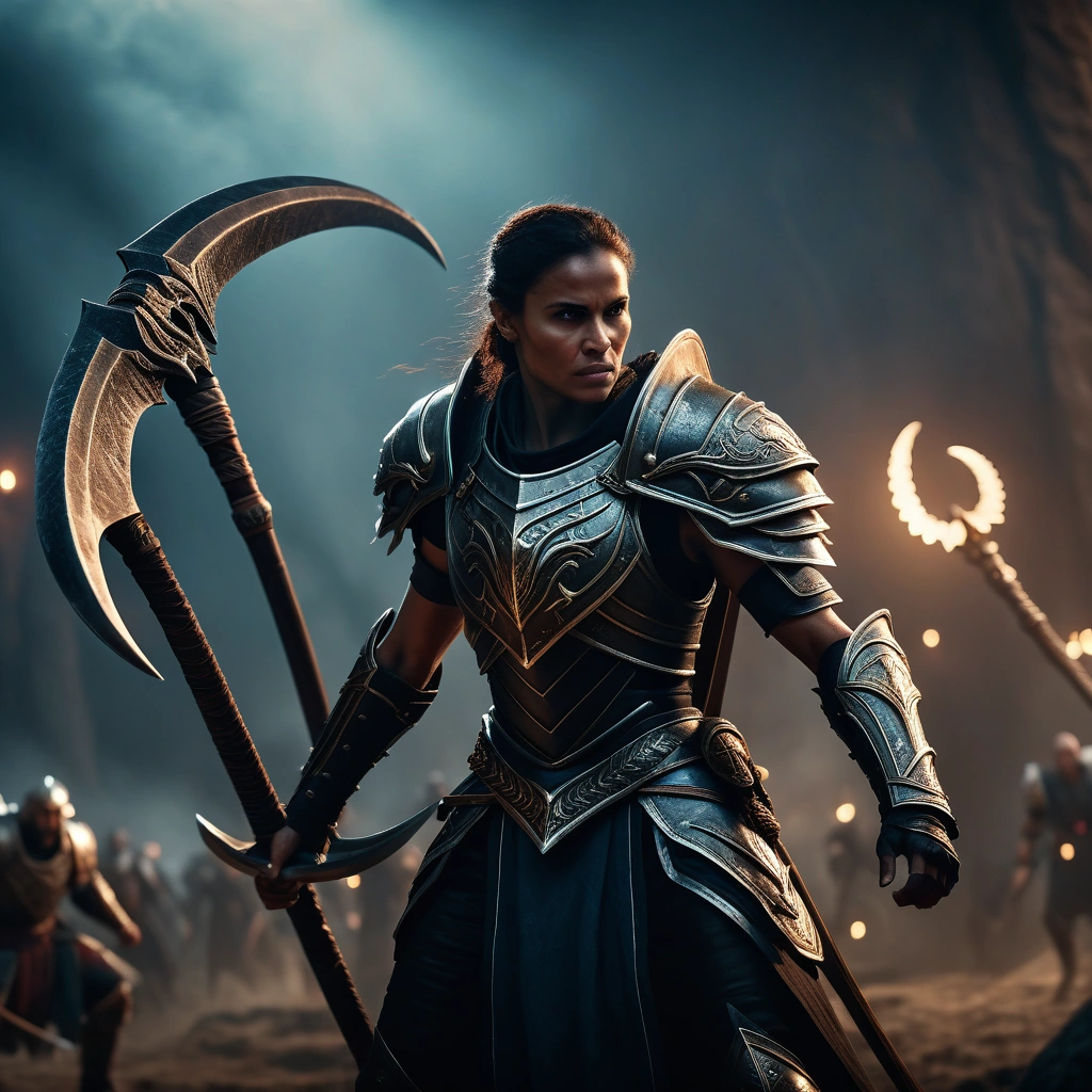 dnd art goliath fighter with large scythe female ai generated