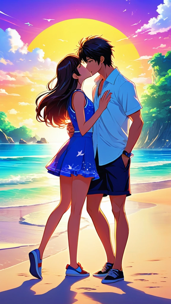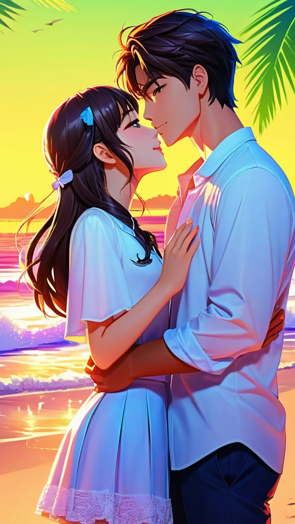 romantic couple love kiss beach