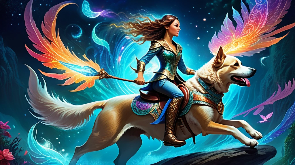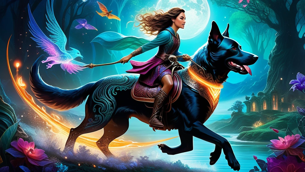 woman riding dog